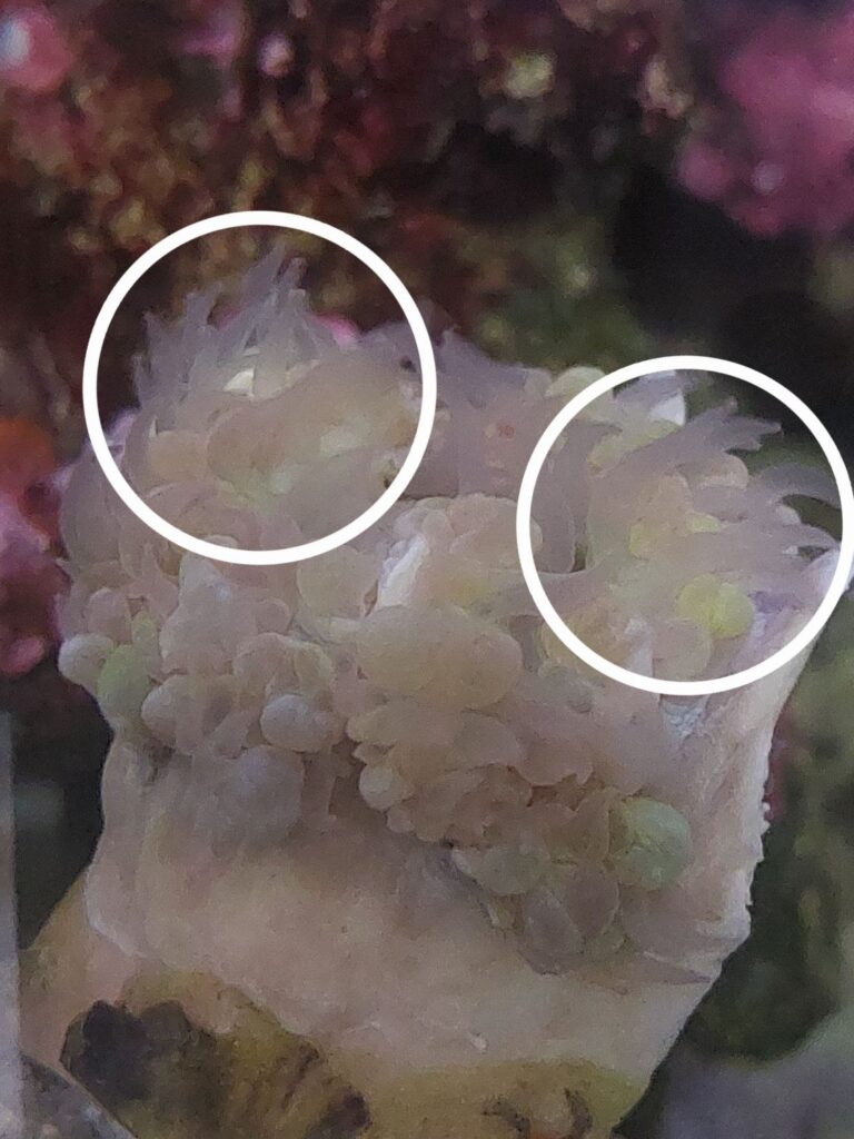 購入時の状態の見極めが非常に重要です。丈夫なミズタマサンゴなのですが、やはり最初から弱っている場合、それを復活させるのは難しいと思われます。ミズタマサンゴ特有の風船のようなポリプがパーンと張っている感じを選ぶ事が大切ですね。